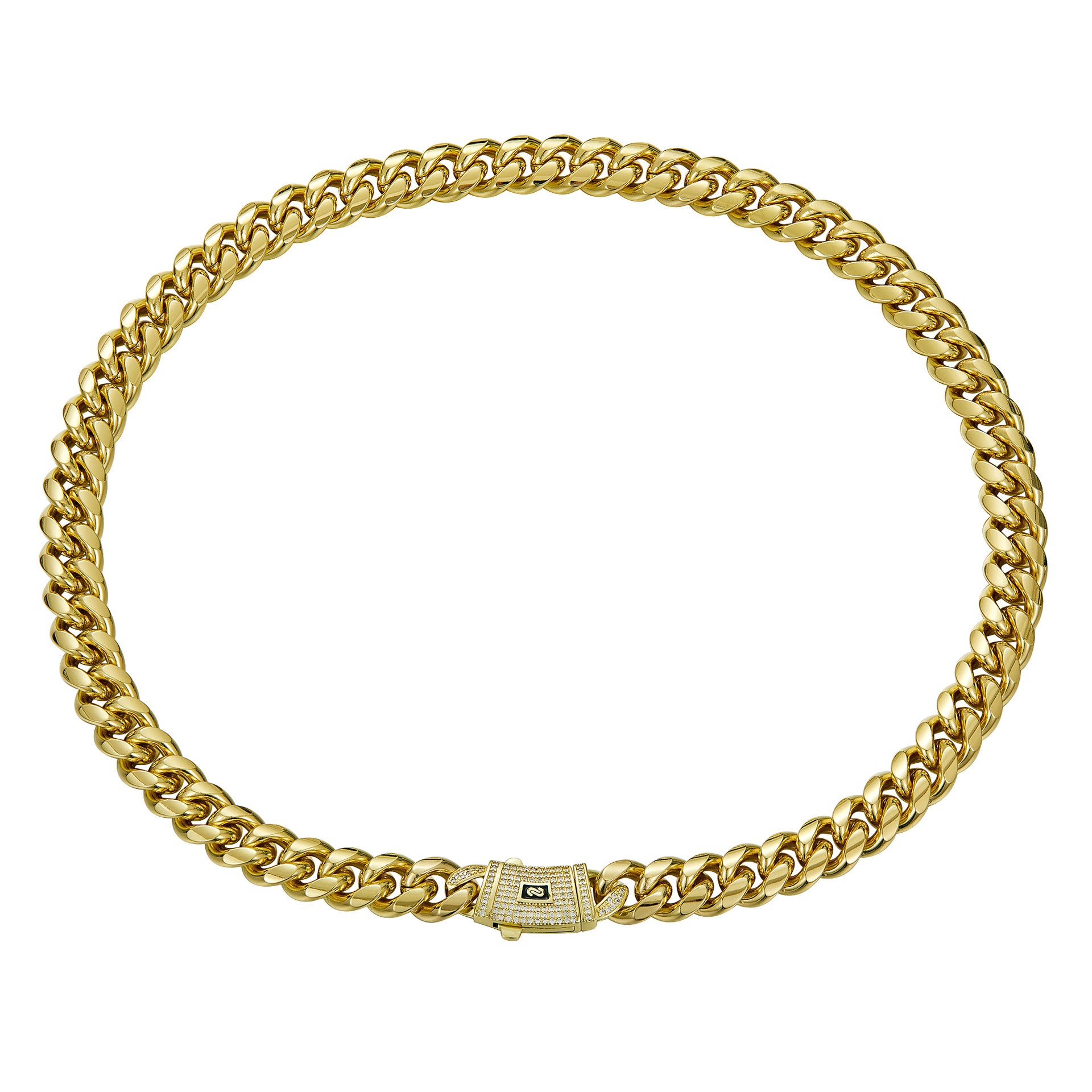 ·[MATERIAL]Made of stainless steel, waterproof, non-allergic, high-precision polishing, bright, mirror-like texture,Using 14K gold plating technology, the surface will not fade within a year·[SIZE]The width is 14mm to meet the needs of various groups of people.The length is and can .24in can be used as a necklace.·[DESIGN]The clasp is novel and firm, and the plug-in and push-button switches are convenient to wear and take off.The chain is dense, the gap is small, it is firm and not easy to break, grinding on all sides, unique style·[TWO STYLE OPTION] Can be worn as a necklace or bracelet depending on the length·[GIFT CHOICE]The chain necklace is a stylish gift for women, husband, brother, friend, boyfriend, girlfriend, or anyone you love on Anniversary, Birthday, Christmas, Valentines Day, Father’s Day, Mother’s Day, etc.