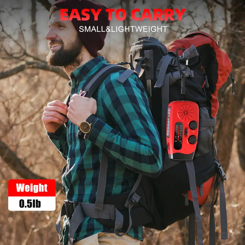 ·【 Super Bright 3 LED Flashlight 】 The flashlight on this emergency hand crank radio has been upgraded from a 1W single bead to a 3W 3 LED bead that provides 140LM of brightness, enough to provide you with emergency lighting in the event of a power outage.·【 SOS Alarm Function for Emergencies 】This emergency hand crank radio has been upgraded to include a SOS distress function. When stranded in a snowstorm or hurricane, you can press and hold for 3 seconds to sound a siren louder than 80 decibels to attract the attention or help of rescuers·【 3-Way Power Sources for the Radio 】 This emergency hand crank radio can be charged via hand crank, solar panel and Type-C charge. There are 3 power backup options, making it easier to keep the emergency radio running for long periods of time.·【 Access to AM/FM/NOAA Radio Stations 】This emergency hand crank radio pick up AM/FM bands enjoy your leisure time, and also access to NOAA weather broadcasts that report emergency weather information for your area and alert you to prepare in advance.·【 Pocket-sized Emergency Radio 】This emergency hand crank radio measures 5.9in × 3.1in × 2.3inches and weighs , making it very lightweight and easy to carry. Whether at home or outdoors, lighter and smaller device in an emergency kit is a better choice.