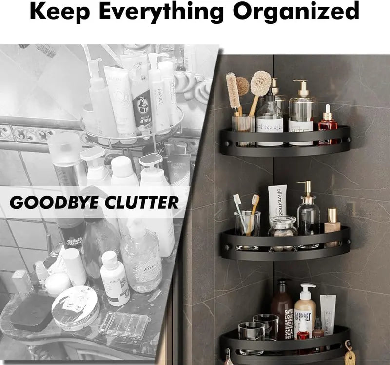 ·【Multi-Function】Two colors to choose from, suitable for storage in the corners of your home, the wall shelf can be used to expand your storage space and organize items in the bathroom, and can store all soaps, shampoos and toiletries. Easy to disassemble and wash daily without damaging your wall.