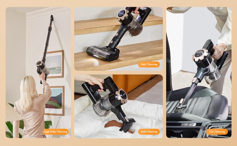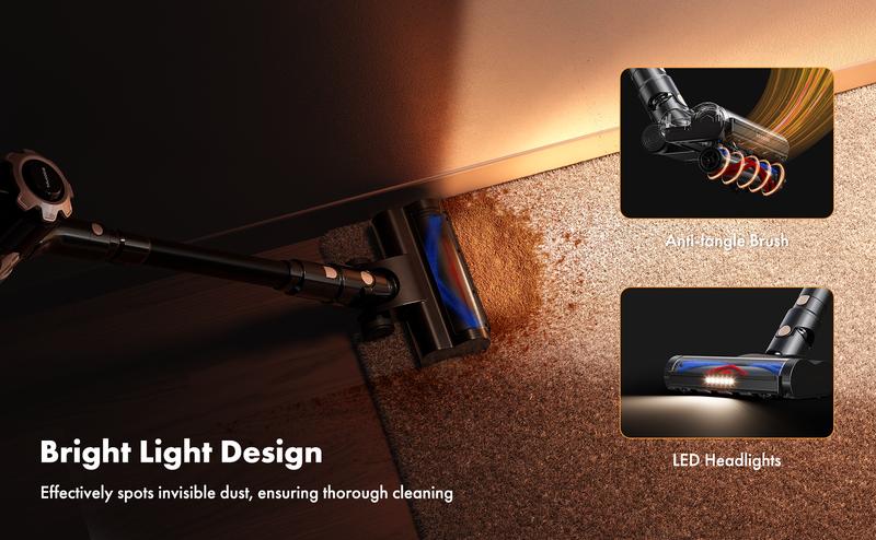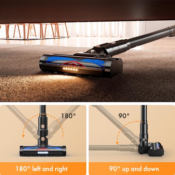 ·380W POWERFUL BRUSHLESS MOTOR: Equipped with a powerful 380W brushless motor, it delivers an upgraded suction power of 28,000Pa. Easily captures all the dust, pet hair and debris in your home.·Homeika All Terrain Cleaning Expert | Hard Floor/Short Blanket/Tile Universal | 8-in-1 Multi-Scene Accessory Set | 1.2L Removable Dust Box + HEPA Filtration·Homeika Spirit LED Electric Roller Brush | 180° Universal Rotation + 4 Lights Illumination | Pet Hair Tangle Free | Sofa Underbed Cleaning Specialist”·99.99% Dust Lock | 0.1μm Precision Filtration | Cyclone Dust Removal | Note: Regular washing of the filter can maintain the strong suction power.·【The End of Range Anxiety 】1 Charge = Clean 200 square meters | Strong gear 20 minutes / Standard gear 30 minutes / Energy-saving gear 50 minutes | Removable 6 lithium batteries to support the exchange of renewable chargers·BUY WITH CONFIDENCE: Homeika offers 7*24 hour customer service for cordless handheld vacuum cleaners and 100% satisfaction after sales service for life.