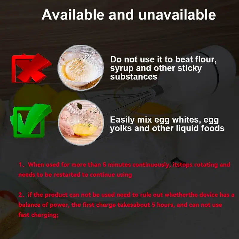 Electric Hand Whisk With USB Charging, Multi-Functional Kitchen Gadget for Baking & Mixing