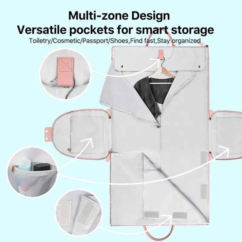 Travel Bag Carry OnWhy You’ll Love ItTired of choosing between a suitcase or a duffle bag? The Lefame Travel Bag combines both in one smart design. Keep your outfits wrinkle-free, shoes separate, and essentials easy to grab—whether it’s a business trip, weekend getaway, or hospital bag.️ Airline-Approved Carry OnFits under the seat or overhead bin. Save baggage fees and travel stress-free with TSA-approved dimensions.Wrinkle-Free Garment DesignUnfolds into a garment bag so your suits, dresses, or uniforms stay flat and ready-to-wear. Perfect for weddings, business, or any event where looking sharp matters.Separate Shoe CompartmentNo more mixing dirty shoes with clean clothes. Dedicated, breathable shoe pocket keeps your sneakers, heels, or gym shoes organized.Waterproof & DurableMade with premium waterproof material to protect your clothes, electronics, and toiletries—even on rainy days.Smart Multi-Zone Storage·Zipper pockets for passport & cosmetics·Side compartments for shoes & toiletries·Main space fits up to 7–14 days of outfits (57L capacity)Multi-Use EssentialTravel Carry-On Weekend Bag Gym Bag Hospital Bag / Maternity Bag🎁 Gift-ReadyStylish and practical, this bag makes the perfect gift for frequent travelers, moms-to-be, fitness lovers, and professionals.