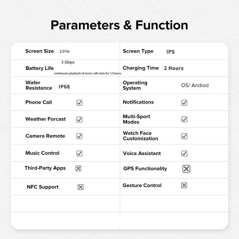 【Advanced Features】: Equipped with over 100 health monitoring modes, this smartwatch caters to diverse fitness tracking needs.【Impressive Battery Life】: The 600mAh battery ensures long-lasting performance, minimizing the need for frequent recharging.【Rugged Construction】: Built to withstand tough conditions, this smartwatch boasts an IP68 water resistance level for extreme durability.【Multi-Purpose Functionality】: Offers wireless calling capabilities, fitness tracking, outdoor LED lighting, and built-in compass features.【Dual Display Type】: Features a unique analog-digital watch face for a modern look, enhancing usability at a glance.