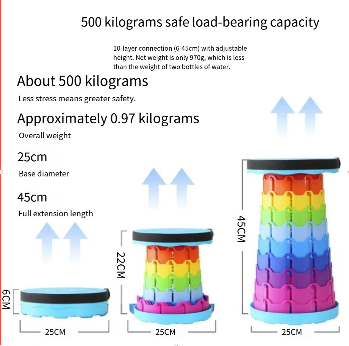 SPOVEN Upgraded Collapsible Stool Lightweight Portable Telescoping Stool with Load Capacity 400lbs ,Retractable Stool for Outdoor Fishing,Hiking,BBQ,Camping,Gardening